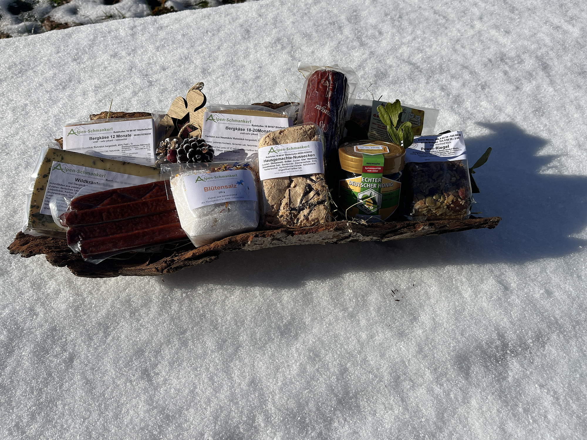 Mit Begeisterung erstellen wir individuelle Geschenke nach Ihren Vorstellungen. Die Produkte können Sie nach Lust und Laune zusammenstellen. Ob es ein Geschenkkorb für einen Geburtstag oder für festliche Anlässe wie Hochzeit, Jubiläen oder Weihnachten sein darf, wir fertigen diesen kreativ für Sie. Ich freue mich hierfür über einen Anruf unter Tel. 08384 8236234 oder eine Mail an info@alpen-schmankerl.de, um Ihre individuellen Wünsche entgegenzunehmen!